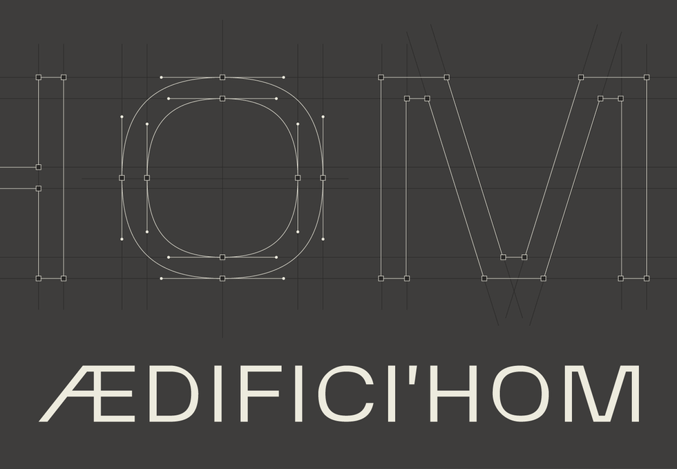 J’ai également dessiné la typographie Ædifici’Hom sur mesure, pour qu’elle dialogue parfaitement avec le monogramme et renforce l’identité globale de la marque.